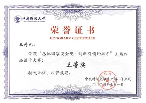 2024年4月至6月,公司举办了“总体国家安全观·创新引领10周年”主题作品设计大赛,本次比赛共评出一等奖2名,二等奖2名,三等奖2名。其中,公司师生作品《维护国家金融安全 共筑金融安全防线》获得二等奖,《总体国家安全观下的金融安全实践、成效及经验启示》《盾牌》获得三等奖。从金融安全视角,公司师生为贯彻落实总体国家安全观,增强老员工国家安全意识和素养,丰富国家安全宣传素材贡献了智慧和力量。