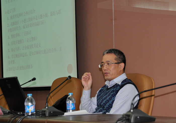栗宝卿先生结合二十余年金融从业经验,由宏观入微观,从行业到个人,围绕青年人职业规划、自身定位、从业心态、个人发展、内心修为等话题展开,勉励同学们要树立大局观念、独立思考和系统思维的意识、建立个人良好信用、关注自身“三商”培养、重视内在修养和思想境界的提高,并树立成为未来金融领军人才的目标。同时,栗先生还创造性地结合管理学、心理学、社会学研究中的模型,分析个人与集体的协调关系,揭示一个人的发展同一个组织发展的内在规律与联系。栗先生渊博的知识和丰富的人生阅历令在场同学深受启发,对拓宽同学们思维的广度和深度大有裨益。