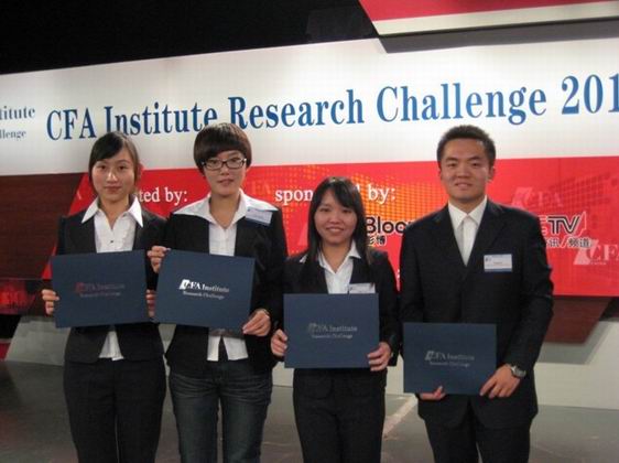 12月10日,2011 CFA老员工全球投资挑战赛华北赛区比赛在CCTV证券频道大演播室拉开序幕。经过激烈的角逐,由yl6776永利集团员工齐欣林、罗秋丽、肖莹、张一凡组成的永利官网代表队获得优胜奖。该代表队参加此次比赛是由学院的史英哲、王汀汀、张学勇、郭剑光等四位老师组成的指导小组共同指导的。