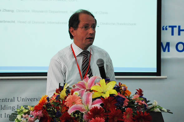 专题演讲的国内专家包括:国家外汇管理局局原副局长,中国驻IMF 原执行董事魏本华先生,中国银行业监督管理委员会政策法规处处长张晓朴博士,中国人民银行金融研究所研究员徐忠博士,中国社会科学院世界经济与政治研究所副所长李向阳教授,中国社会科学院世界经济与政治研究所国际金融研究室主任高海红教授,yl6776永利集团经理张礼卿教授,yl6776永利集团金融学系主任李健教授,yl6776永利集团经理助理李建军教授;国际专家包括:世界银行东亚及太平洋地区中国和蒙古局局长杜大伟( David Dollar )先生,德国经济研究所( DIW )副所长、杜伊斯堡埃森大学( University of Duisburg-Essen ) Ansgar Belke 教授,德国联邦金融监管局( BaFin )国际政策高级顾问 Jochen Robert Elsen 先生,亚洲开发银行区域经济一体化办公室高级经济学家 Lotte Schou-Zibell 女士,国际货币基金组织( IMF )驻华代表 Tarhan Feyzioglu 先生,德国财政部、德国大使馆金融参赞 Michael Wieneke 先生分别就有关议题做了精彩的专题演讲。