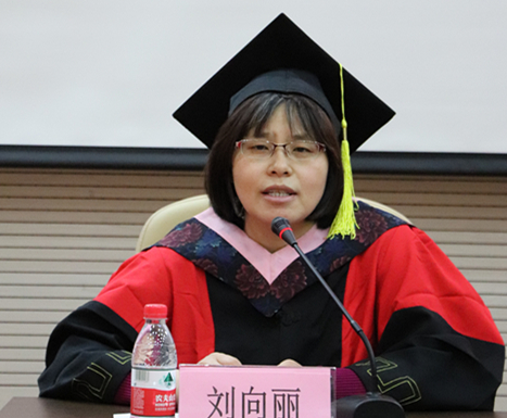 仪式第三项,是金融工程系教授刘向丽老师作为导师代表发言。她首先向学位获得者们表达了祝贺,表示在今天,大家实现了各自人生的又一次大跨越,开启了新的篇章,也分享了自己在职读博时的辛苦和努力。最后她向在座的所有同学表达了殷切的期望,即人人要有责任心,做事必须有信心,成功路上有恒心,常怀一颗感恩心,并希望大家带着这四心,在工作岗位上再创辉煌!