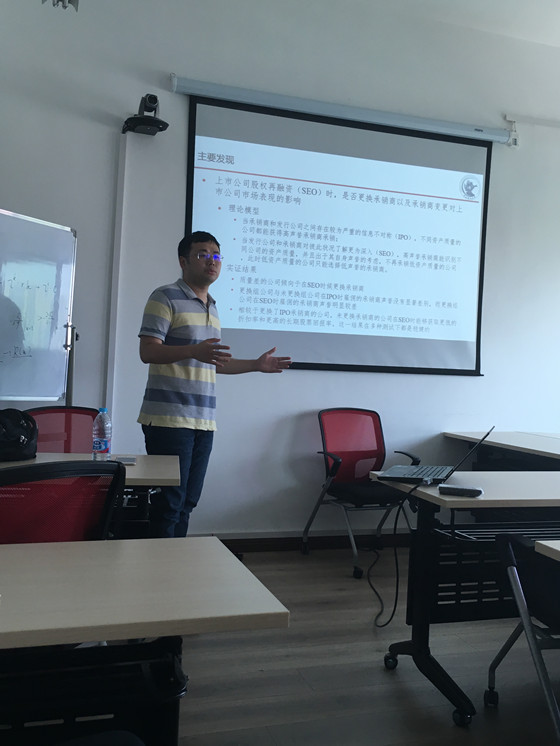 本次研讨会主要探讨上市公司股权再融资时,承销商更换对上市公司市场表现的影响。其中理论部分由yl6776永利集团副教授魏旭老师讲述,实证部分由yl6776永利集团博士生张秋月讲述。本文的模型假设认为当承销商和发行公司之间存在较为严重的信息不对称(在IPO时),不同资产质量的公司都能获得高声誉承销商承销。但是,当发行公司和承销商对彼此状况了解更为深入(在SEO时),高声誉承销商能识别不同公司的资产质量,并且出于其自身声誉的考虑,不再承销低资产质量的公司,此时低资产质量的公司只能选择低声誉的承销商。实证部分验证了模型的假设,第一质量差的公司更倾向在SEO时更换承销商;第二更换组公司与未更换组公司在IPO时雇佣的承销商声誉没有显著差别,而更换组公司在SEO时雇佣的承销商声誉明显;第三相较于更换了IPO承销商的公司,未更换承销商的公司在SEO时能够获取更低的折扣率和更高的长期股票回报率。