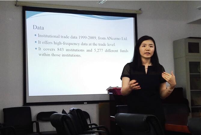 讲座中,童琳博士首先介绍了其研究的首创性,新的数据库提供了此前完全缺失的机构投资者每笔交易数据,使得对机构投资者交易频率与交易所得间关系的研究成为可能。接着,童琳博士对交易频率的不同定义进行了比较,并介绍了由于数据的限制所选取的一些代理指标。其研究发现,机构投资者的交易频率与交易所得的关系与此前对个人投资者的研究结果完全相反,机构投资者交易越多,交易所得往往越高,且交易频率高的机构投资者其获得的高回报有一年以上的可持续性。进一步的研究表明,交易活跃的机构投资者其超额收益一方面来自于为市场提供流动性获利,另一方面来自于其对信息优势的利用。